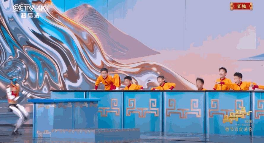 松延动力的仿生人形机器人与著名演员蔡明配合演绎小品,宇树科技的人形机器人“丝滑”演绎中国武术,银河通用机器人在舞台上串台词、叠衣服,魔法原子八台机器人随着音乐节拍,与人类同步舞动。