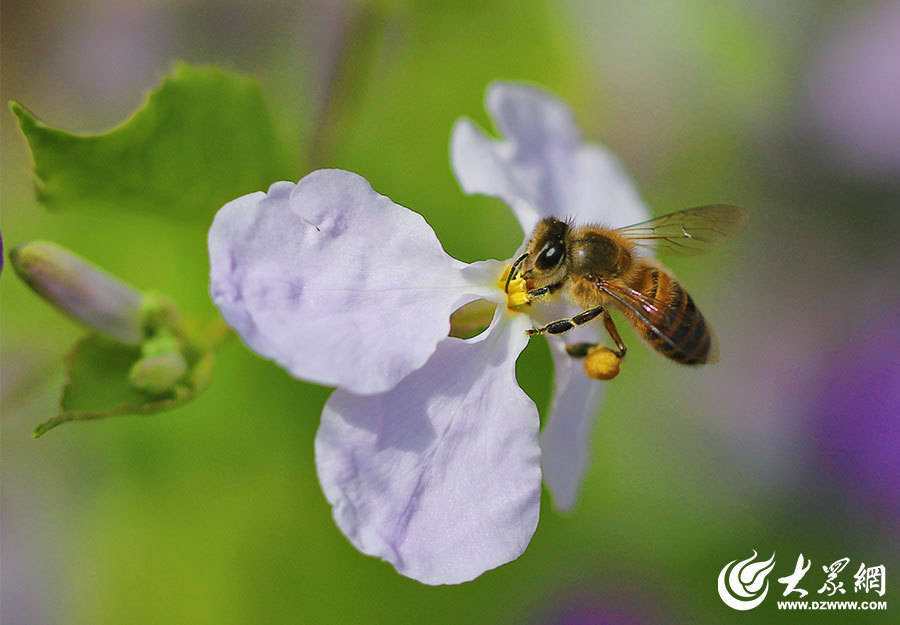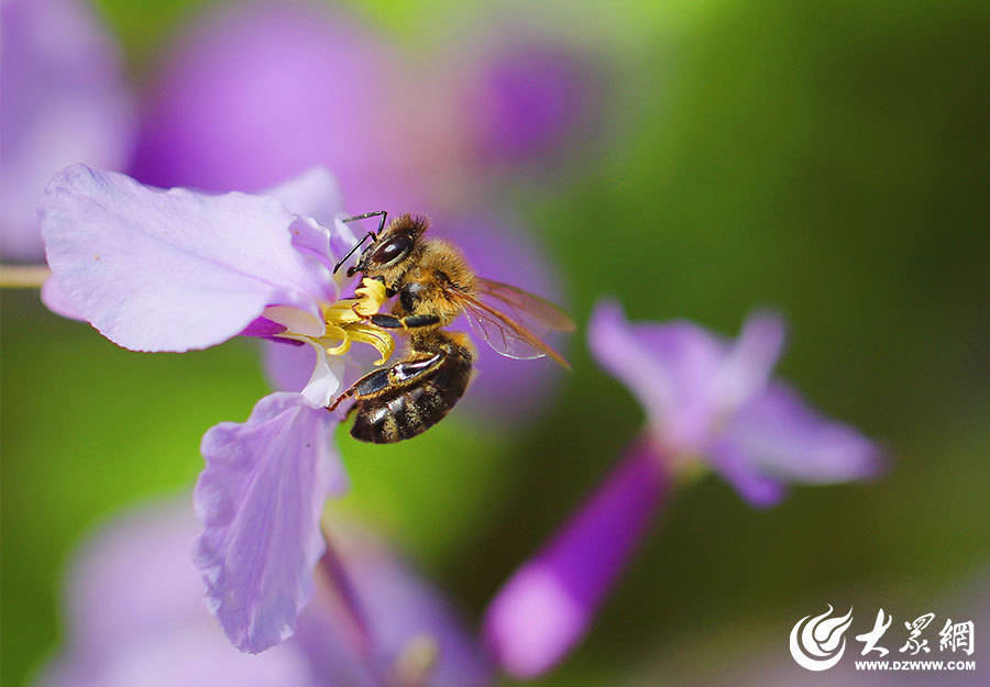 紫花绽芳,蜂栖蕊间,定格滨州春日灵动瞬间。(摄影:李鹏)
