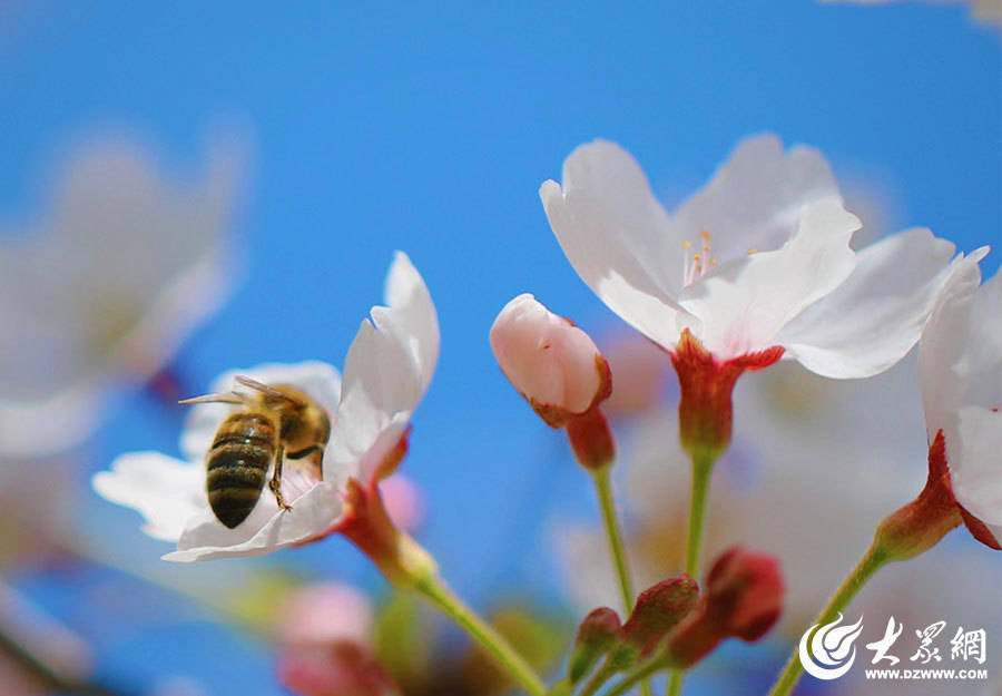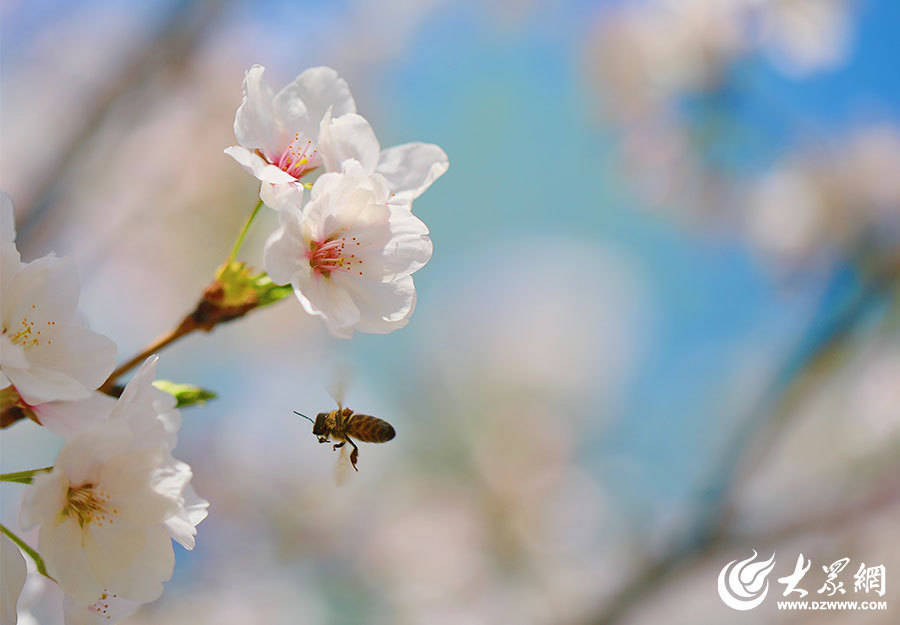晴空花绽,蜂舞翩跹,彰显滨州生态向好(摄影:李鹏)