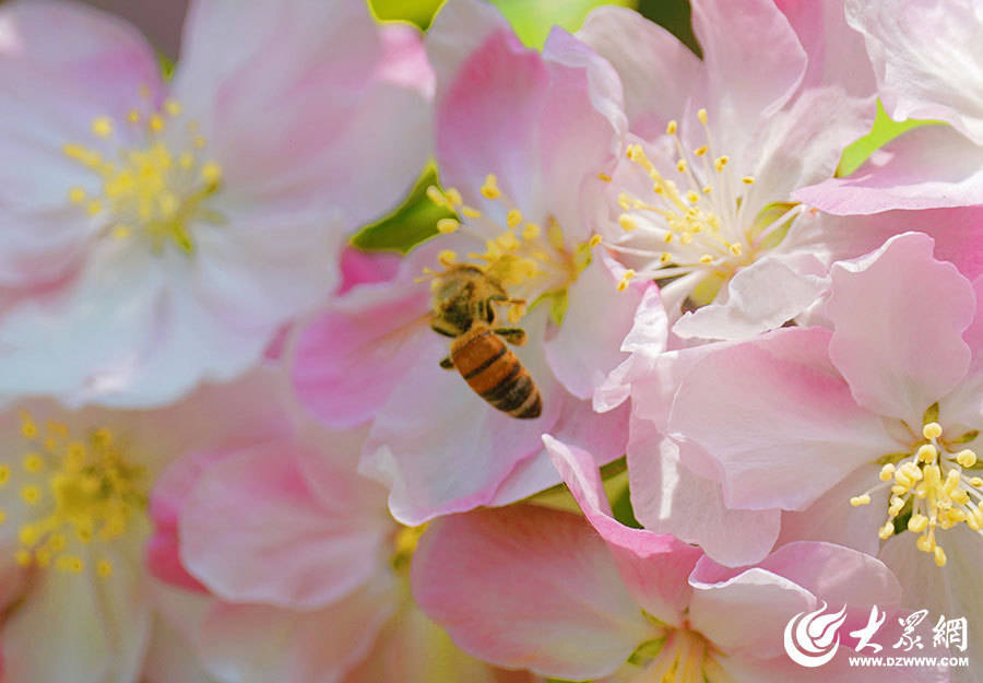 粉棠映日,蜂戏花间,绘就滨州春日盛景(摄影:李鹏)