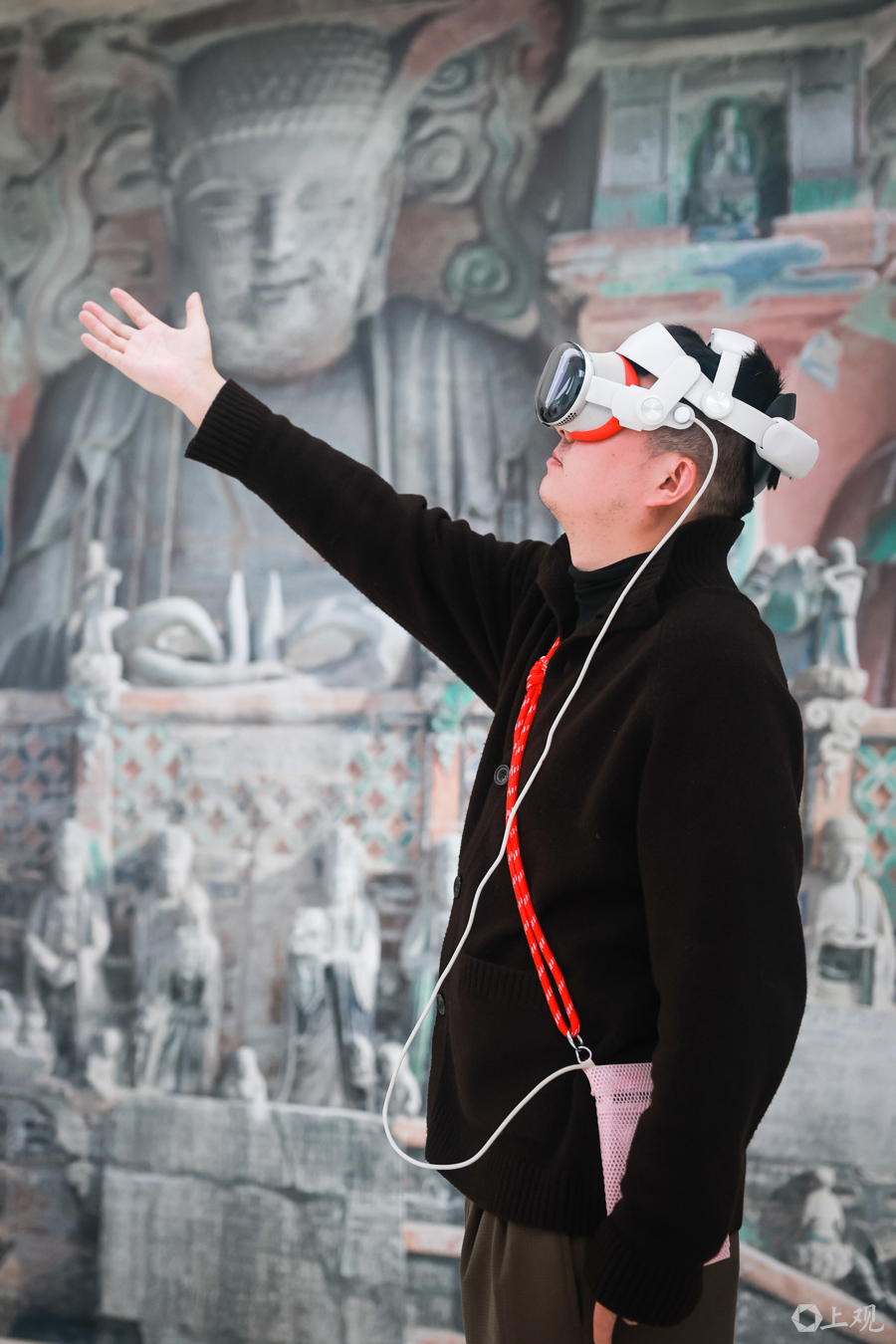 戴上MR眼镜,山西高平铁佛寺内24尊长期不对外开放的诸天造像便“跃然眼前”;转身之间,重庆大足石刻的摩崖造像又浮现身旁……